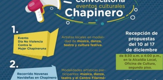 Como resultado de la convocatoria de artistas realizada por la Alcaldía Local de Chapinero, entre los días 10 y 17 de diciembre de 2018, se recibieron 18 propuestas, de las cuales 14 se presentaron para el evento Recorrido Novenas Navideñas y 4 para Evento Conmemoración del Día Internacional de la NO Violencia Contra la Mujer.