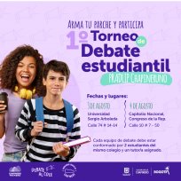 Participa en el 1er Torneo de Debate Estudiantil un espacio que busca el desarrollo y potencialización de habilidades en oratoria, argumentación y refutación. Si eres estudiante de los grados 9no y 10mo de colegios públicos de Chapinero, inscríbete.