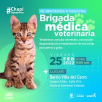 Te invitamos a nuestra brigada médica veterinaria, tendremos vacunación, desparacitación eimplantación de microchip para perros y gatos.