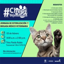 ¡Con Chapi Dejando Huella cuidamos de tu animal de compañía! Participa este sábado en la jornada de esterilización y brigada médico-veterinaria que realizaremos en Pardo Rubio. Te esperamos.