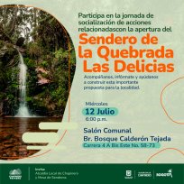 Tus aportes son valiosos para el proceso de formalización y apertura del sendero de la Quebrada Las Delicias. Por eso te invitamos a participar en las jornadas de construcción colectiva que realizaremos en el barrio Bosque Calderón.