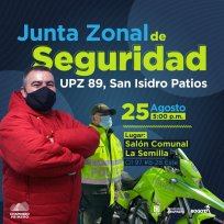 La Junta Zonal de Seguridad llega a la UPZ San Isidro Patios. Acompáñanos en este espacio de diálogo en el que abordaremos temas de interés para toda la ciudadanía. ¡Entre todos construimos un Chapinero Más Seguro!