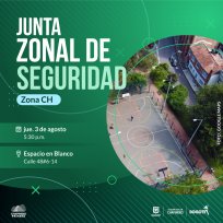 ¡Chapinero Más Seguro para la ciudadanía! Este jueves 3 de agosto realizaremos una nueva Junta Zonal de Seguridad en la Zona CH. Participa y conoce las acciones que hemos realizado para cuidar de la comunidad.