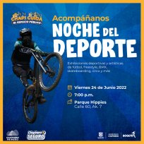 ¡Llega la ‘Noche del Deporte’ a Chapinero! Acompáñanos en la exhibición de diferentes disciplinas deportivas y artísticas con las que resignificamos el espacio público en nuestra localidad. Te esperamos