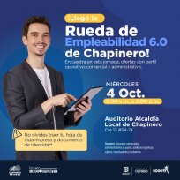 ¡Llegó la Rueda Dde Empleabilidad 6.0! Alista tu hoja de vida y encuentra oportunidades laborales para perfiles operativos, comerciales y administrativos en diferentes empresas. Te esperamos el miércoles 4 de octubre en la Alcaldía Local a partir de las 9:00 a.m.