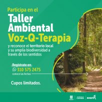 Si quieres reconocer el territorio local y la biodiversidad de Chapinero a través de los sentidos, participa en el Taller Ambiental Voz-Q-Terapia. Inscríbete escribiendo al teléfono 3105752475