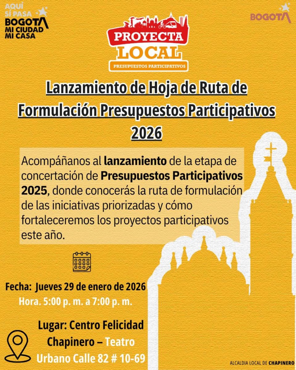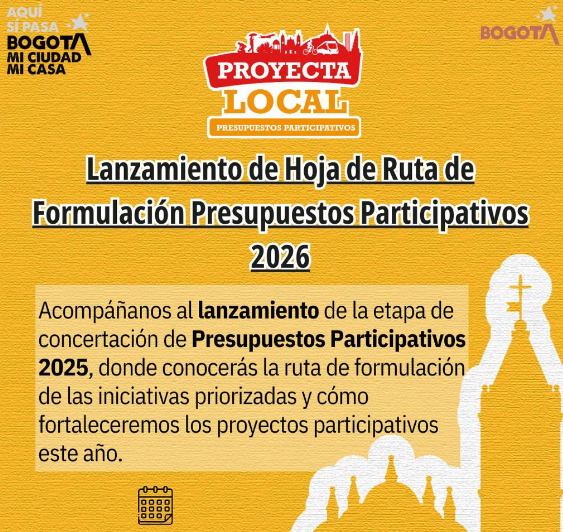 Conozca los resultados de Proyecta Local – Presupuestos Participativos en su edición del año 2025. En este, se consigna la información de las propuestas a ser materializadas por la Alcaldía Local y que fueron registradas a través de las tres (3) rutas de participación ciudadana que componen este proceso de planeación participativa local: i) Idea Lo Local, ii) Imaginemos Lo Local y iii) Transforma Lo Local.