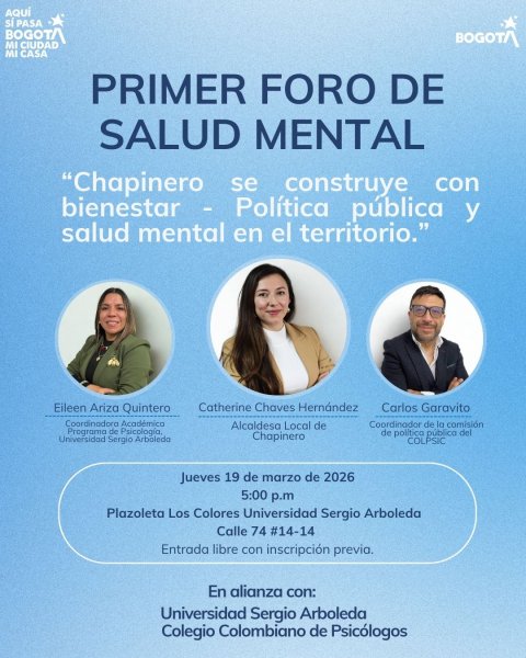 Este será el primer foro de salud mental impulsado desde la administración local, con la participación de la Universidad Sergio Arboleda y el Colegio Colombiano de Psicólogos, actores que aportarán una mirada académica, técnica y territorial para fortalecer la construcción de una agenda de bienestar emocional en Chapinero.